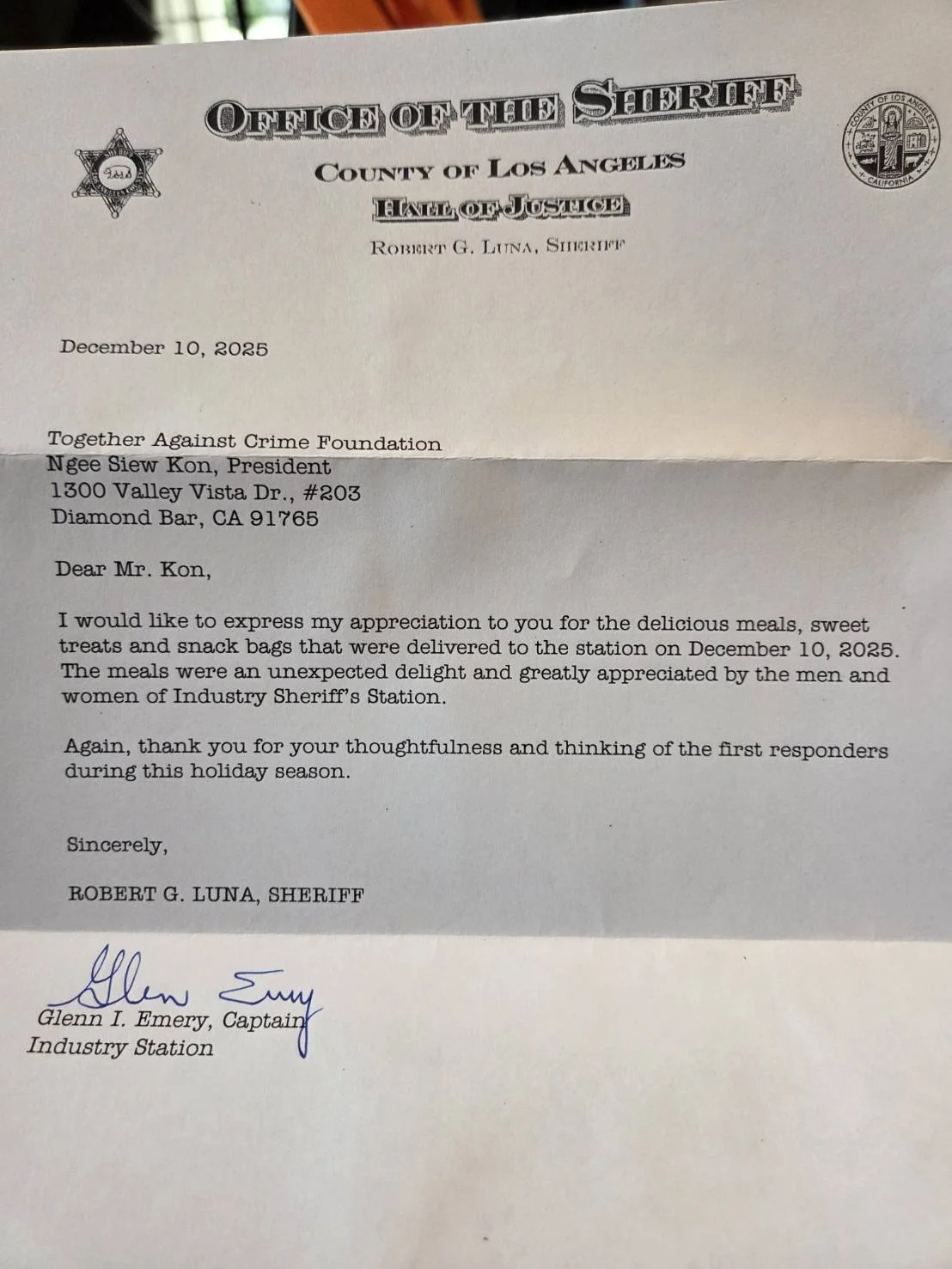 工業市警局轄區涵蓋 Hacienda Heights, Whittier, City of Industry, La Puente 及 La Habra Heights 等地,華人居民眾多。此次活動不僅表達了社區對警察守護安全的感激之情,更建立了更有效率的溝通管道。
